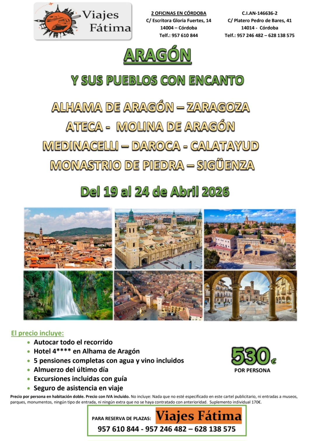 Descubre Aragón y sus pueblos con encanto en un circuito completísimo de 6 días que combina historia, naturaleza, patrimonio monumental y rincones con alma. Del 19 al 24 de abril de 2026 recorreremos algunas de las joyas más sorprendentes del interior peninsular: desde la elegancia monumental de Zaragoza hasta villas medievales llenas de tradición como Daroca, Calatayud o Medinacelli, pasando por enclaves de postal como Molina de Aragón y la fuerza natural del espectacular Monasterio de Piedra, con sus cascadas y paisajes únicos.